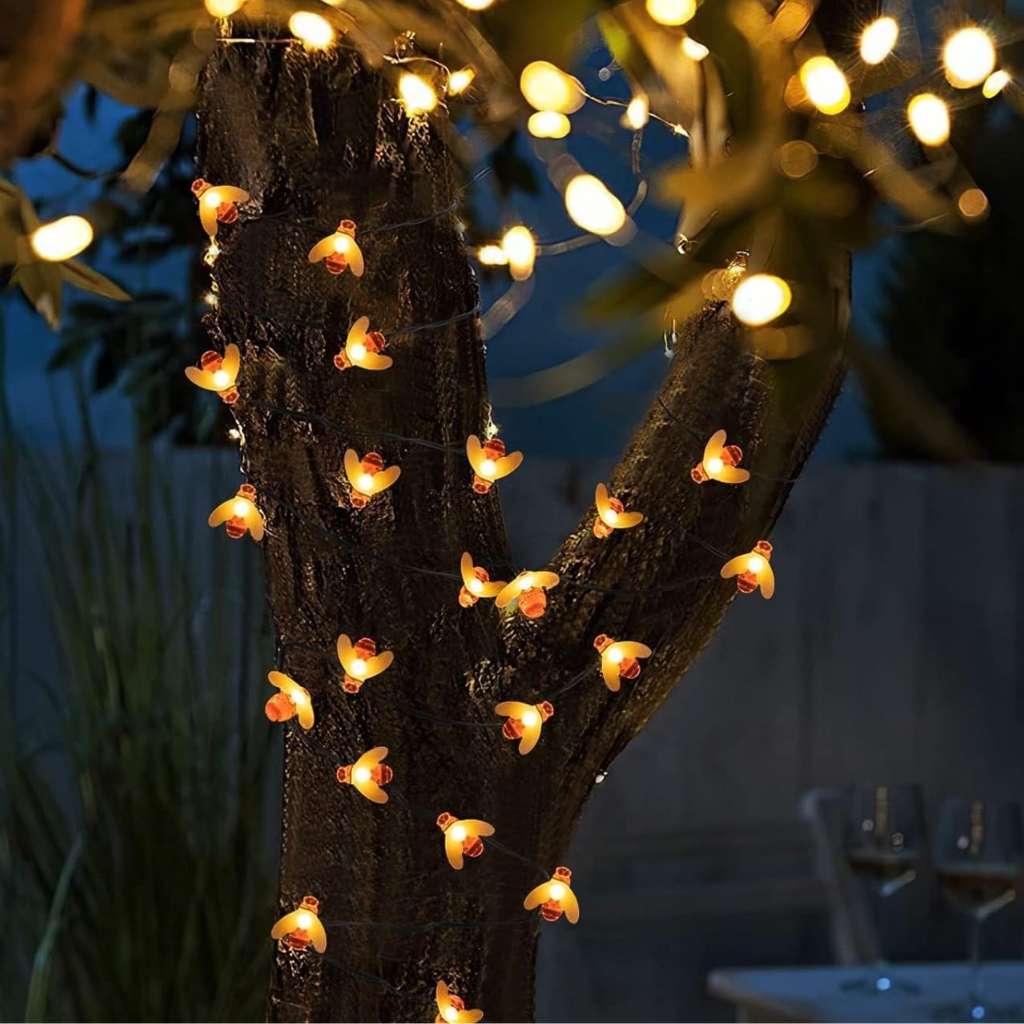 Combiná la luz cálida con el brillo de las abejas y los clips en forma de hoja para crear un ambiente lleno de vida. Tus plantas, enredaderas o macetas se verán increíbles, tanto de día como de noche.